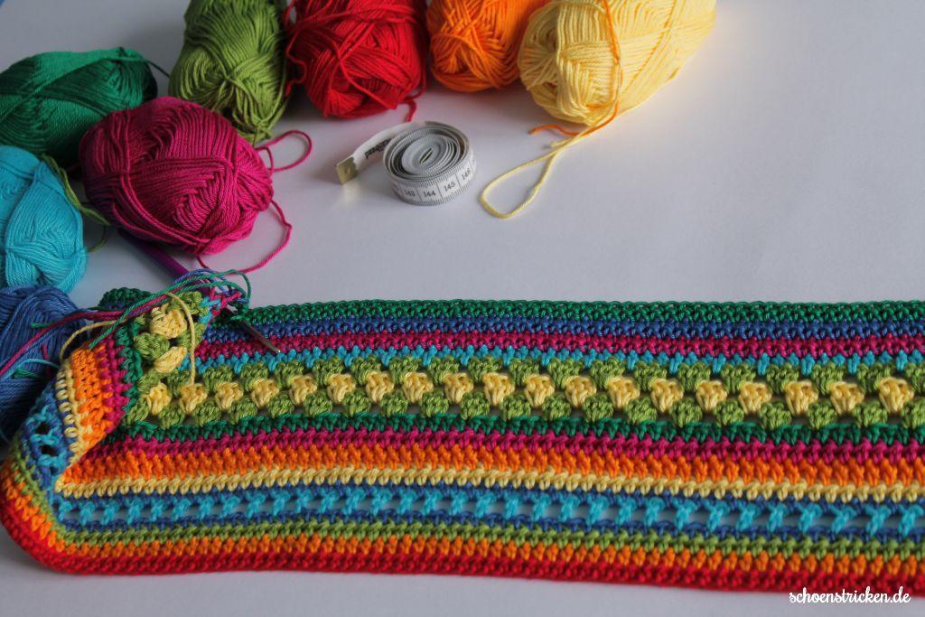 This time, though, it’s going to be different. I designed a new blanket together with Jessica over at schoenstricken.de. It’s made of cotton yarn in rainbow colors and will end up baby-sized – about 27″ x 35″. With Christmas coming up faster than expected, we decided to turn it into a German crochet Along, that is: a CAL.